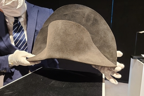 国际拍卖行邦瀚斯(Bonhams)将于10月底在伦敦举行拿破仑专场拍卖会,逾130件拿破仑相关拍品将上拍,包括拿破仑肖像画、烟盒及瓷制半身像等,拍品总估价超过150万英镑(约合人民币1338万元)。部分拍品近日在香港举行预展,其中估价最高的是拿破仑的一顶双角帽。